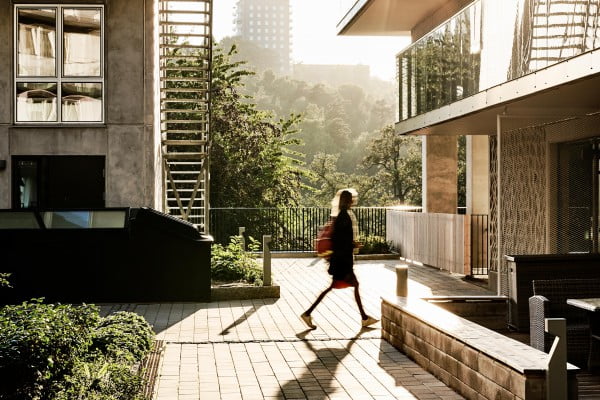Bostadshus som bjuder in kvarteret