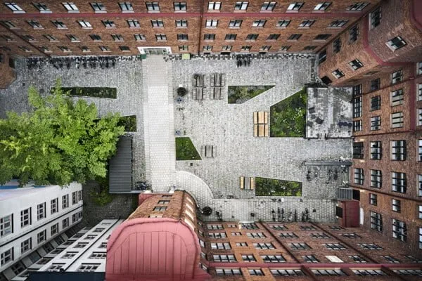 Återbruk och biologisk mångfald på innergård i Hornstull