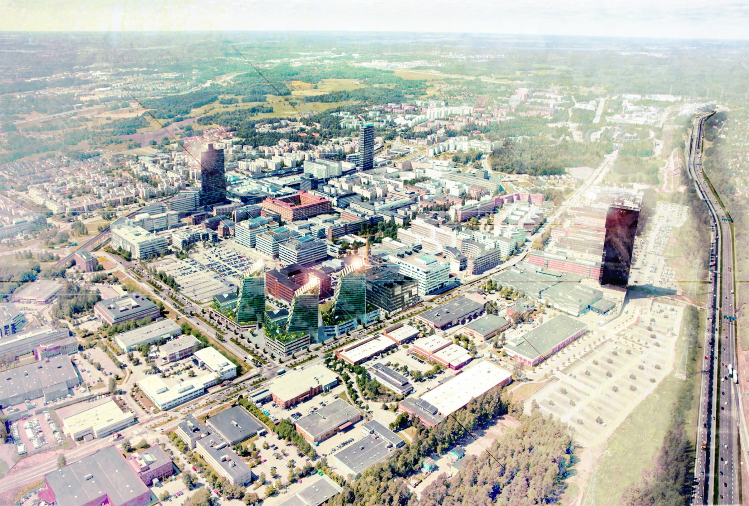 Våren 2016 fick vi uppdraget att ta fram ett förslag på utformning av tre kvarter i Kista, som del i ett parallellt uppdrag arrangerat av Klövern och Stockholm stad. Solenergi, grönska och sociala mötesplatser var ledorden i projektet. Vi ville ge stadsdelen nya värden i form av smarta bostadskvarter, som knyter an till Kistas starka profil inom teknisk utveckling. Solen är projektets kärna; byggnaderna har en friare form jämfört med traditionella kvartersblock, anpassad för att skapa bästa möjliga solförhållanden på kvarterens torg, gårdsytor och grönområden. Allt för att stärka området med nya värden i form av sociala, levande mötesplatser.