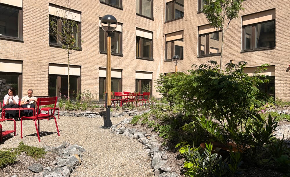 Resultatet är en trivsam och funktionell utemiljö som kombinerar estetik med ekologiska värden. Gården stärker både den biologiska mångfalden och fastighetens långsiktiga attraktionskraft – mitt i stadens hjärta.
